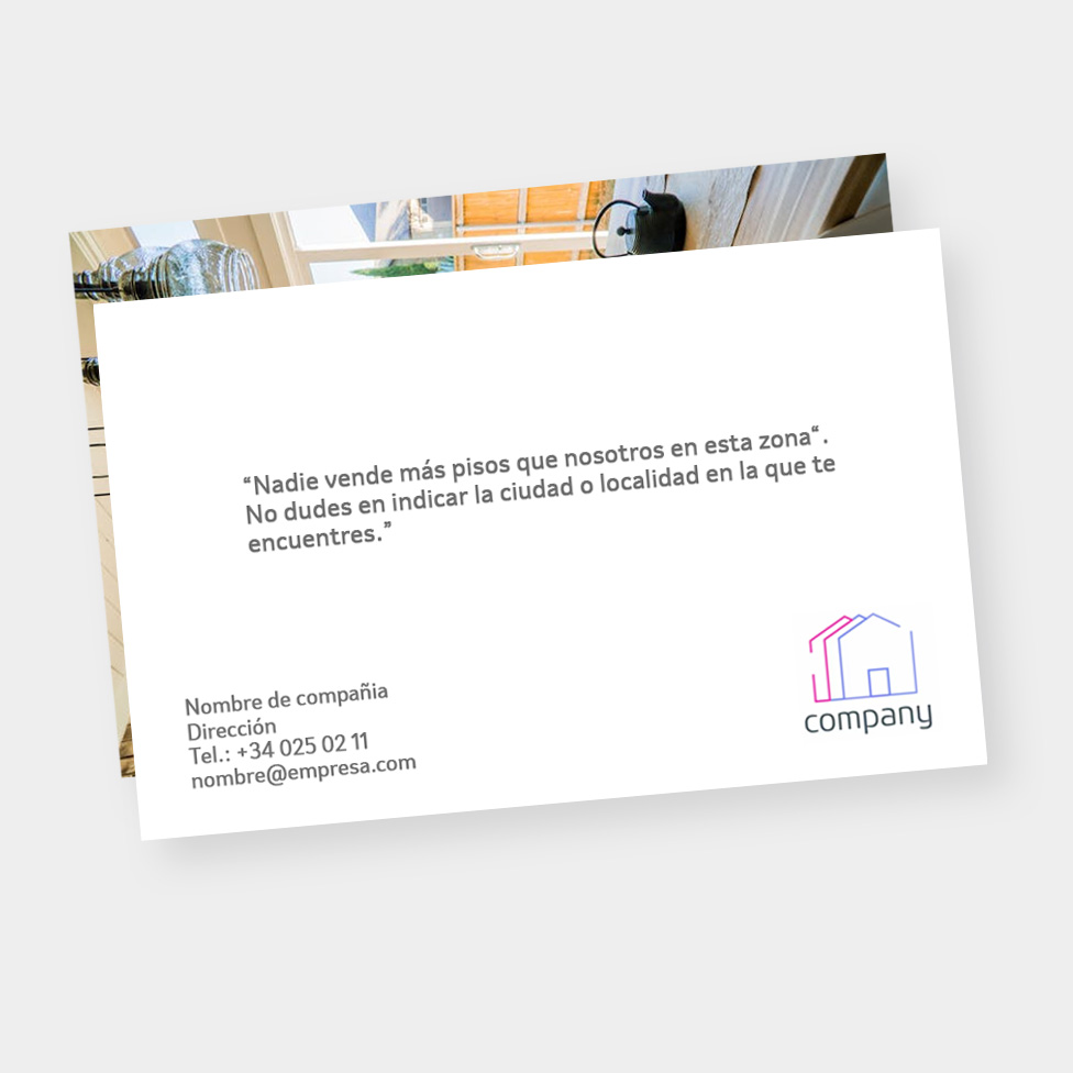 Ofrecemos folletos, tarjetas, carteles y banners para promocionar tus propiedades y servicios.